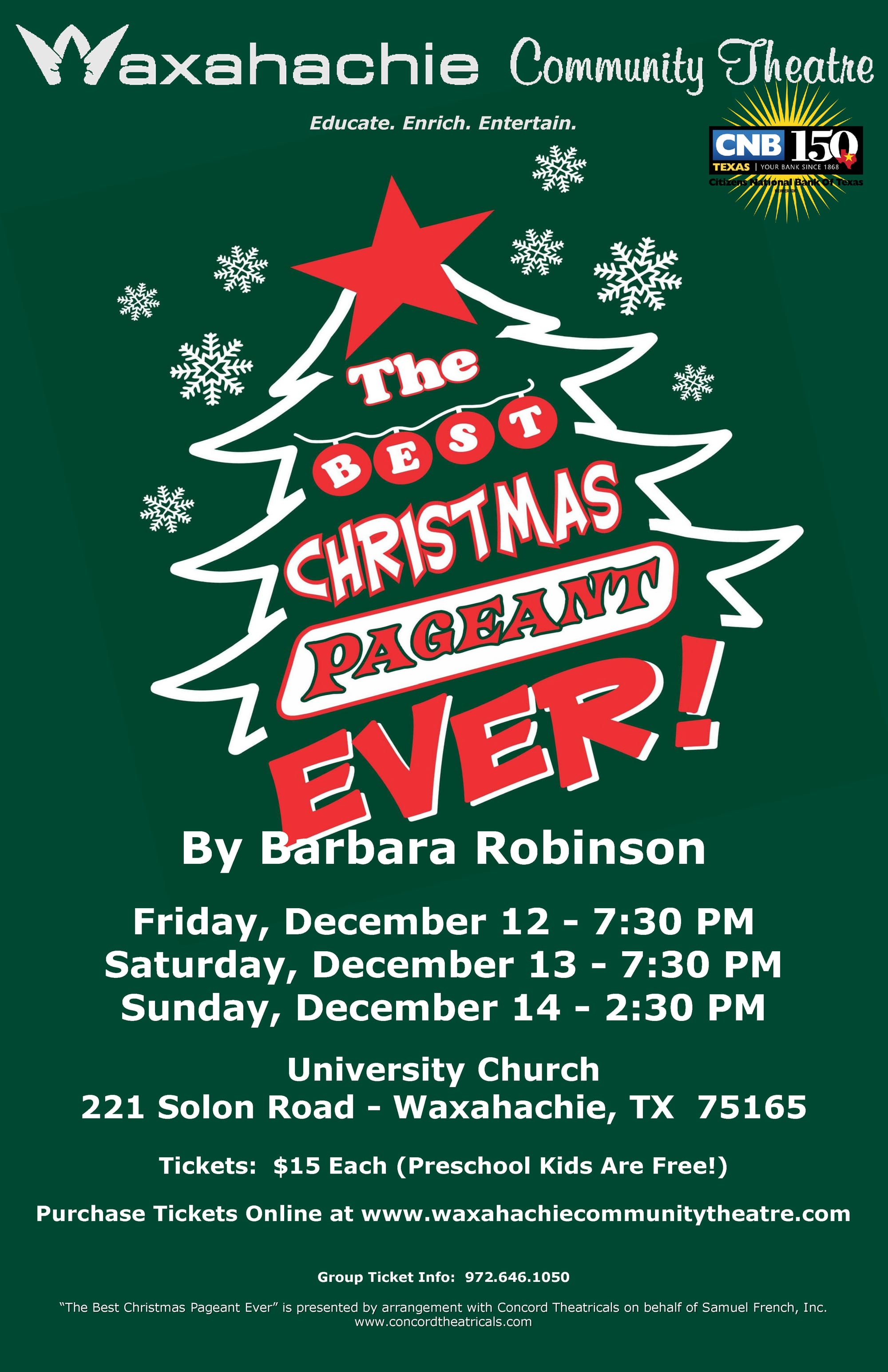 Looking to enjoy some holiday cheer? Waxahachie Community Theatre presents its annual holiday production this weekend, Dec. 12-14. This year’s performance is of “The Best Christmas Pageant Ever,” which is based on the 1972 same-named children’s novel by Barbara Robinson.