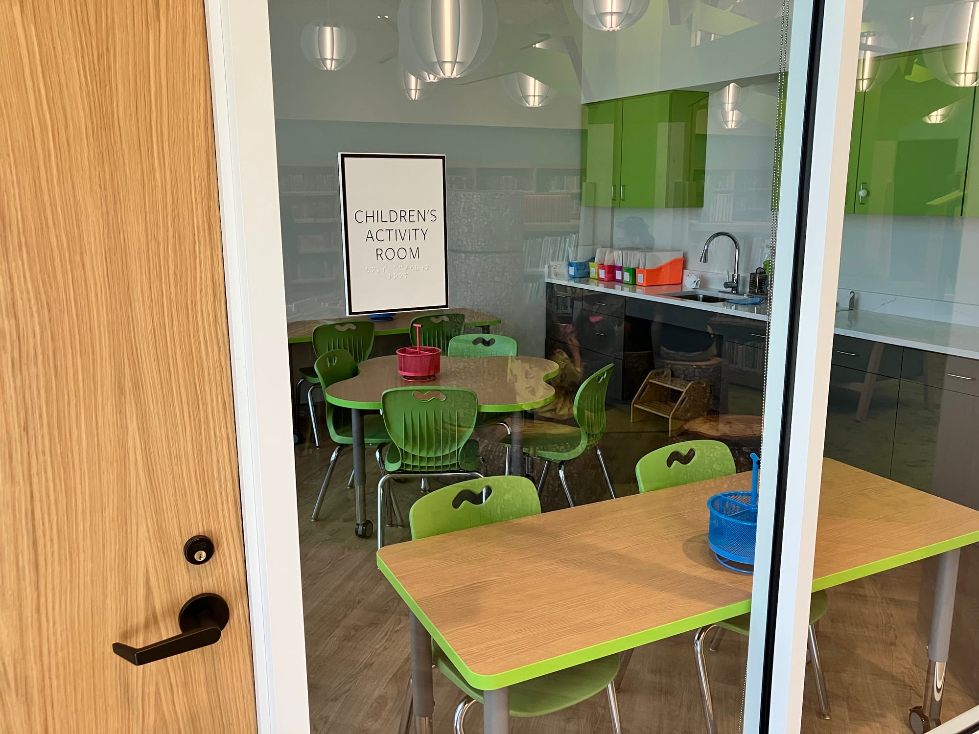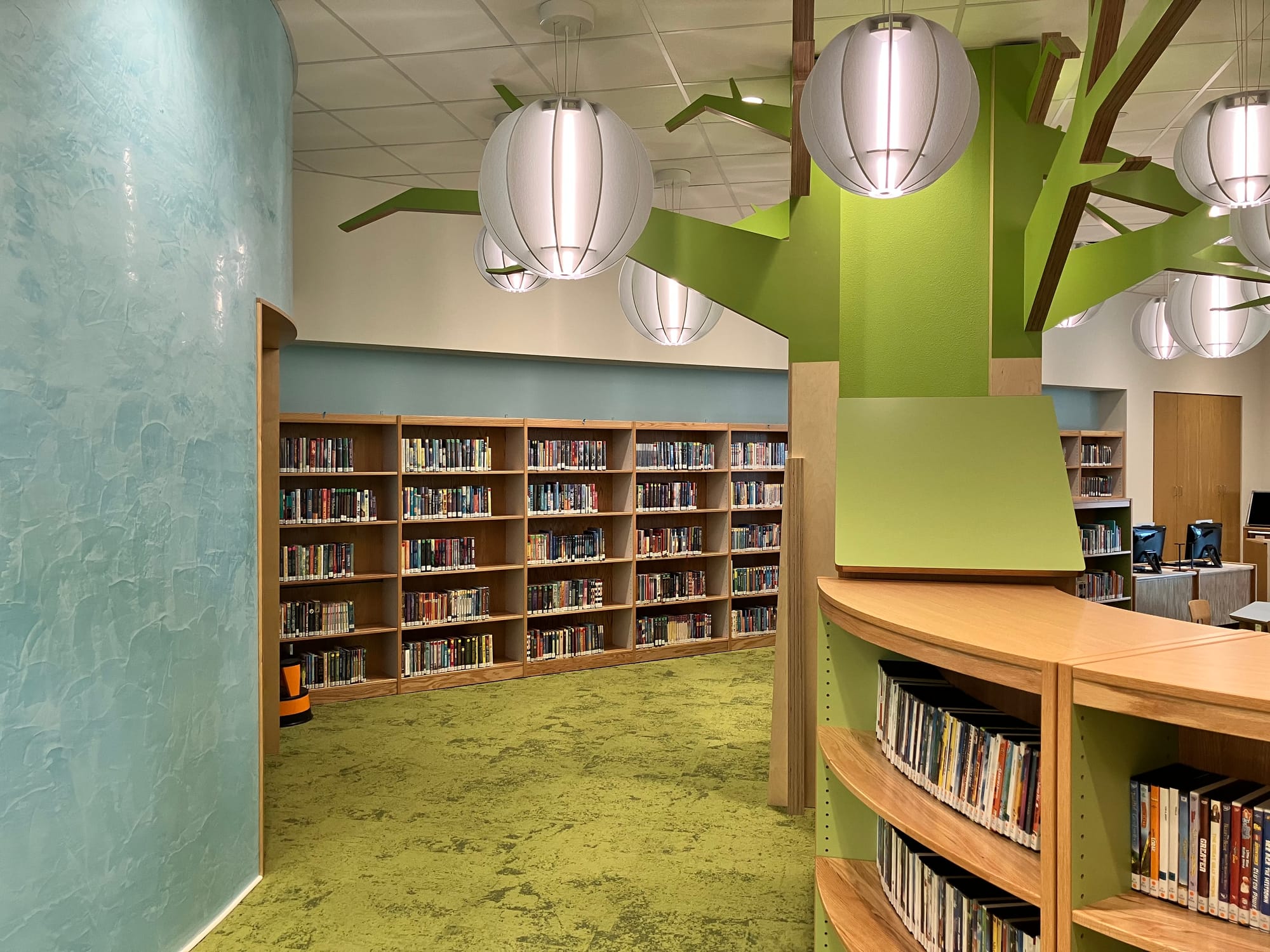 In the children’s area, an activity room was added, which allows the children’s librarian to do a story time and then have a place where a related craft can be done.