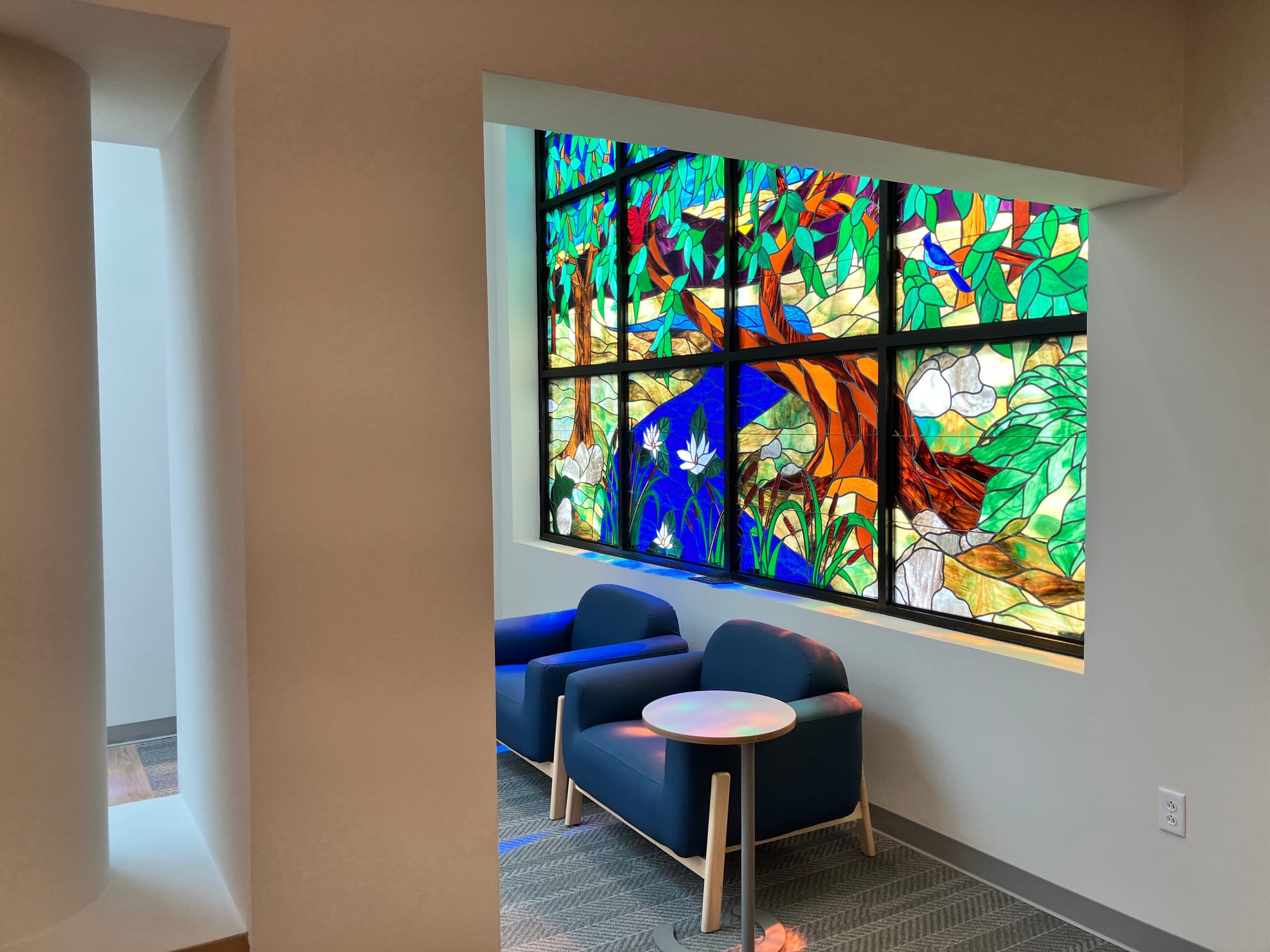 She’s particularly proud that the stained-glass window is now the facility’s “big focal point” due to the removal of a small partial wall that had hampered its view before.