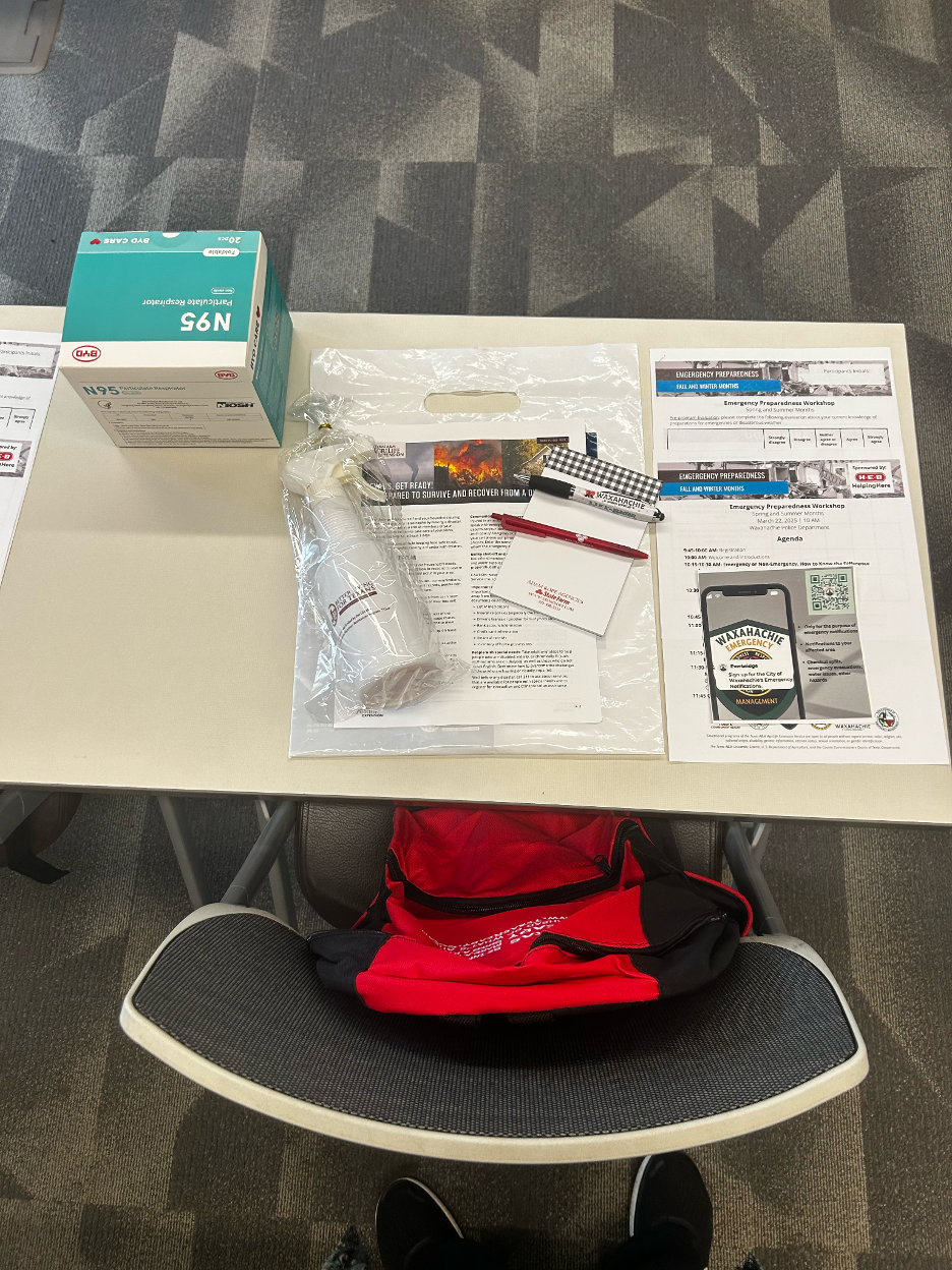Participants left the event with supplies to start building their own emergency preparedness bags, including N-95 masks, whistles, spray bottles for sanitizing, and other items and resources provided by the presenters.